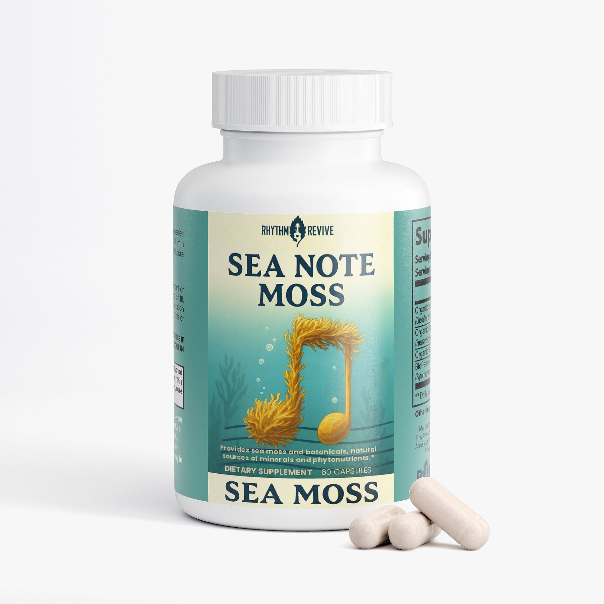 Premium Sea Note Moss is a harmonious blend designed to help keep your body in rhythm. Sea Moss takes center stage, celebrated for its naturally occurring nutrients that support everyday wellness, skin vitality, and digestive balance.
